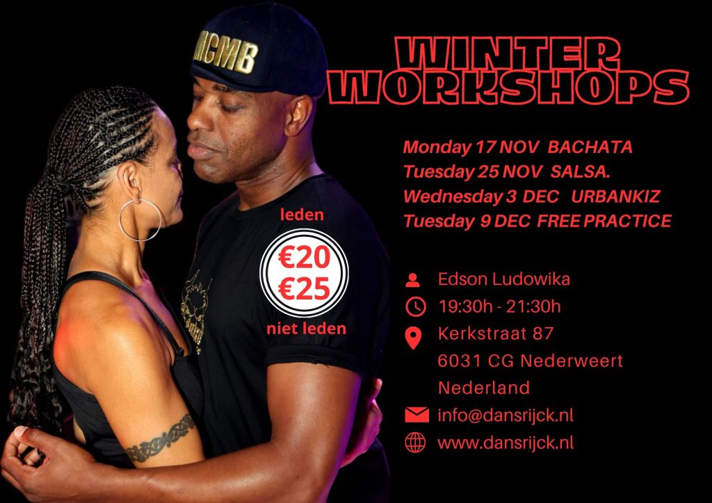 Level up your dancing this winter with four special workshops: Bachata, Salsa, Urban Kiz, and a FREE Practice Night!
